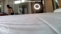 A teen asiática concorda em ser filmada e vendada por um estranho num quarto de hotel. Ela pega boquete, faz sexo anal e engole a porra no final.