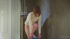 A morena jovem tira a calcinha e se masturba no chuveiro. Ela se dedica e brincar com um vibrador até gozar por conta própria.
