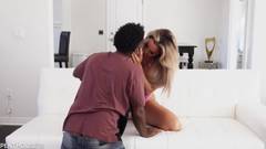 Um negro sortudo fode uma loira linda de canzana, missionário, e recebe seu grande pinto chupado, acabando por gozar nos seus peitos