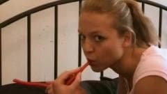 O namorado dela vai embora por um mês mas antes de sair ela lhe ofereceu um filme onde se toca e masturba sua buceta viçosa!