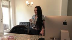 Essa sexy funcionária dos correios, com peitos enormes e longos cabelos escuros, não apenas entrega correspondência, mas também faz um belo boquete.