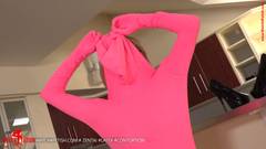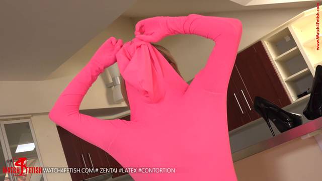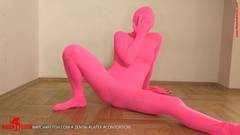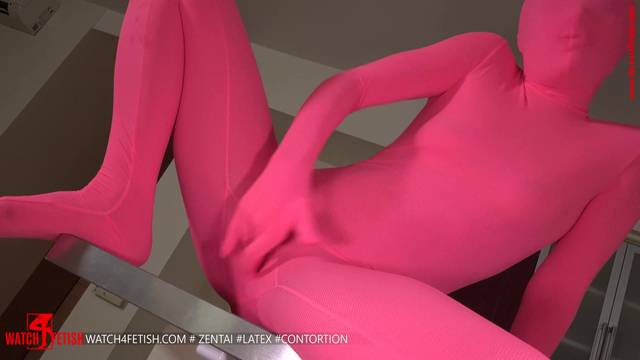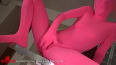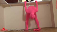 Essa linda loira usa seu traje de fetiche rosa para tocar sua buceta enquanto desaparece dentro dela!