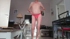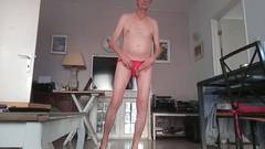 Um velho gay a fazer um vídeo a solo usando as suas cuecas na câmara e mostrando aos fãs com a sua gaiola e provocando-se a si próprio ao vivo.