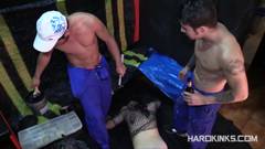 Dois trabalhadores da construção civil, Adrian Yuyu e Dany Romeo fazem uma pausa no trabalho e, com uma cerveja e um cigarro, dominam um colega submisso!