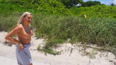MILF gostosa se masturbando no carro enquanto dirige para a praia