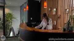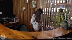A secretária tem tempo livre, então aproveita a oportunidade para se despir e brincar com seu marcador de texto, enfiando-o na buceta.