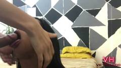 Esse jovem garoto convida sua amante trans favorita para sua casa. Ele lambe o traseiro dela e a fode até ejacular no seu traseiro.