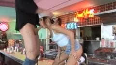 Assistente de cozinha? Nós não sabemos, mas temos certeza de que sua vagina é tão suculenta como o que ela está vendendo!