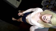 Mila Swift loira trans se masturnbando e filmando a putaria
