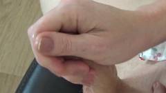 Jovem puta trans de pernas longas com cabelo ruivo se senta em frente ao seu portátil e satisfaz o pedido de um fans: masturbe a sua piça até esguichar