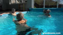 Esse grupo de vovós vai passar a tarde fazendo uma orgia com dois rapazes bonitos na piscina! Elas sabem como se divertir e estão famintas!