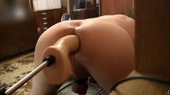 Esse cara de rosto mascarado tem uma máquina de sexo em casa. Ele é profundamente penetrado com um dildo mecânico.