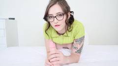 A nerd tatuada pratica hoje algumas habilidades de broche na frente da webcam e depois fode seu dildo também.