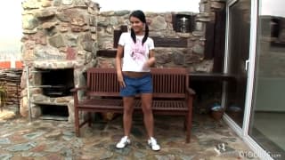 Esse pequeno casal de espanhóis nos diverte com um pouco de sexo ao ar livre com fellatio e estilo cãozinho de pé, tudo com uma bela vista.