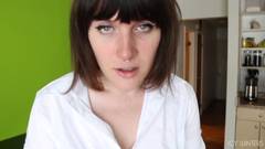 Conhecemos e amamos essa transexual morena alta e sensual. A puta tem um pinto muito grande e o sacode para nós em câmera