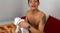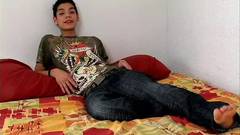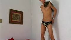 Esse garoto magro sabe que tem um corpo sexy e sabe como exibi-lo em poses sensuais, tentar o público e finalmente mostrar um grande galo e bater nele!