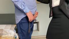 Uma loira de terno de escritório adora ser fodida ao estilo de cachorro, bem fundo por trás alternando com chupar pinto e finalmente engolir esperma.