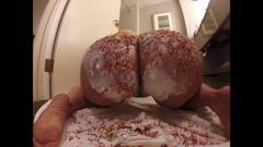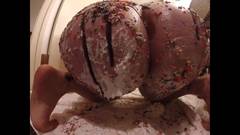 Essa loira com grandes mamas e um grande rabo cobre seu corpo com chantilly e se acaricia só para nós! Sobremesa deliciosa!