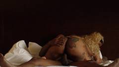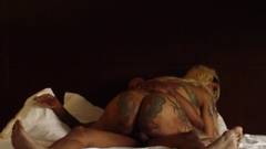 A vagabunda tatuada e excitada tem formosura e uma bunda gorda deliciosa. A puta negra adora chupar bem seu pau longo e duro.