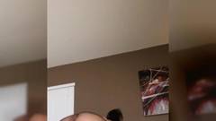 A morena gorda em meias-calças de rede de peixe se diverte com seu dildo rosa. Ela o empurra profundamente para dentro de sua cona molhada