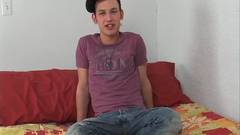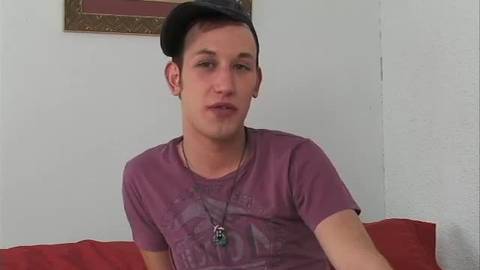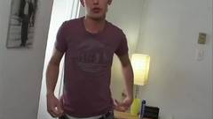 Gay Kalven vai se masturbar para nós na frente da câmera. Ele esfrega seu mega galo até esguichar sua carga.