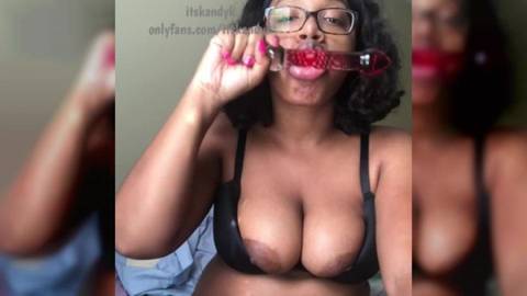 A vadia negra Kandy K nos mostra suas grandes mamas na frente da câmera. Ela realmente vai te tentar com suas mamas!
