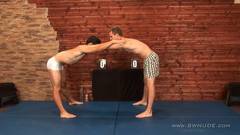 Os corpos nus e oleados de Jan Panik e Daniel Korda em uma luta livre masculina são muito emocionantes de assistir.