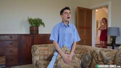 A milf loira Georgie Lyall pegou o amigo de suas enteadas, Jordi El Nino Polla, comendo um travesseiro e lhe deu uma lição de sexo!