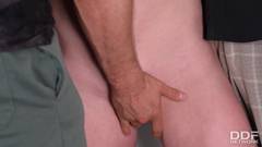 Quando ela o viu conversando com o namorado, ficou excitada e o seduziu com seus peitos grandes para que se juntasse a ela na cama para uma transa apaixonada.