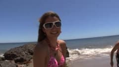 Depois de um dia agradável na praia, esta morena quer ir para a casa de seu namorado para foder!