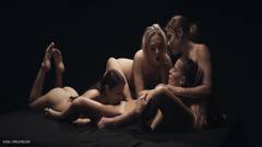 Quatro mulheres excitadas e apaixonadas se reuniram neste estúdio para realizar uma cena lésbica a quatro como uma arte de prazer ao vivo.