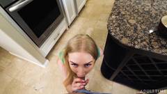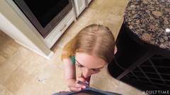Emma Starletto suga o galo do Nathan Bronson mesmo na frente da mãe. Acabam no sofá transando muito gostoso