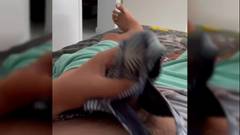Minha namorada saiu e, como eu estava entediado, fui pegar uma de suas calcinhas para me masturbar!