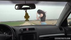 As vadias tchecas transam com um homem em seu carro por dinheiro