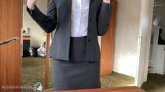 Eles trabalham em um escritório e querem sexo. Hoje eles estão sozinhos, ela fica de meias e ele a fode apoiado na escrivaninha.