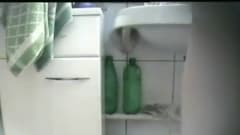 Um cara colocou a câmera no banheiro, a fim de filmar a cona peluda de sua irmã. Que bastardo, mas nós podemos desfrutar!