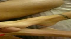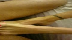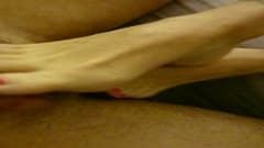 Pés pequenos soberbos que masturbam seu homem gentilmente e gosta de ser fodida ao estilo cãozinho enquanto ele fica com tesão e goza nas nádegas dela.