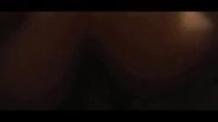 A esposa com enormes mamas que balançam faz com que a sua buceta seja esmagada para esquentar. Então o homem dela lubrifica seu pau para foder o traseiro.