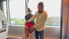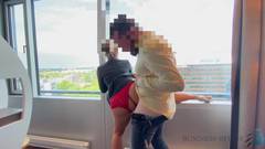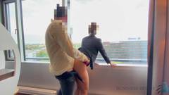 A secretária de negócios adora transar de modo que todos possam vê-la! Desta vez, numa viagem de negócios, ela vai fazer isso num hotel, perto da janela!