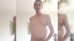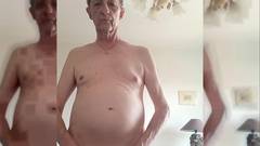 Esse homem idoso está sozinho em casa e, como de costume, passa o tempo com a webcam ligada, masturbando seu pênis.