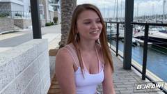 A garota bonita vai se divertir com o pau grande, abre bem a boca na esperança de fazer uma garganta profunda, o que é impossível devido à engenhoca.