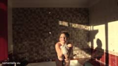 Samanta Lily lava seus seios em um banho de espuma