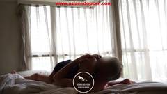 Puta asiática transa apaixonadamente com um homem excitado em um hotel