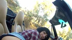 Uma garota excitada está na estrada só para ser pega e fodida. Ela chupará um pau se você lhe der uma carona!
