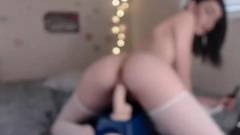 ![Ela parece sexy sentada em um vibrador azul Ela parece sexy sentada em um vibrador azul]()
