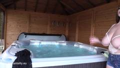 Samanta Lily e sua amiga se encontraram em uma jacuzzi do lado de fora para que pudessem nos excitar com a visão de seus peitos grandes e naturais.
