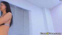 A linda morena mostra seu belo corpo na webcam, agindo de forma safada e suja, pegando o vibrador na frente da câmera e começando a chupá-lo