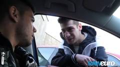O garoto viu o cara no carro e pediu ajuda financeira. O cara no carro riu da oportunidade de sexo fácil, levou-o para casa e fodeu ele com força.