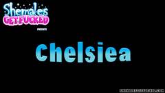Chelsie J Blair é uma transexual gostosa se masturbando com seu pau grande antes de chupar um BBC e ser fodida por ele.