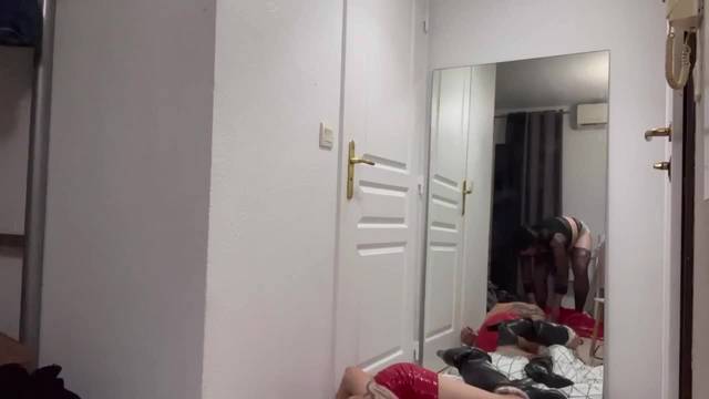 ![Um travesti se diverte em um balanço sexual com seu homem mascarado. Um travesti se diverte em um balanço sexual com seu homem mascarado.]()